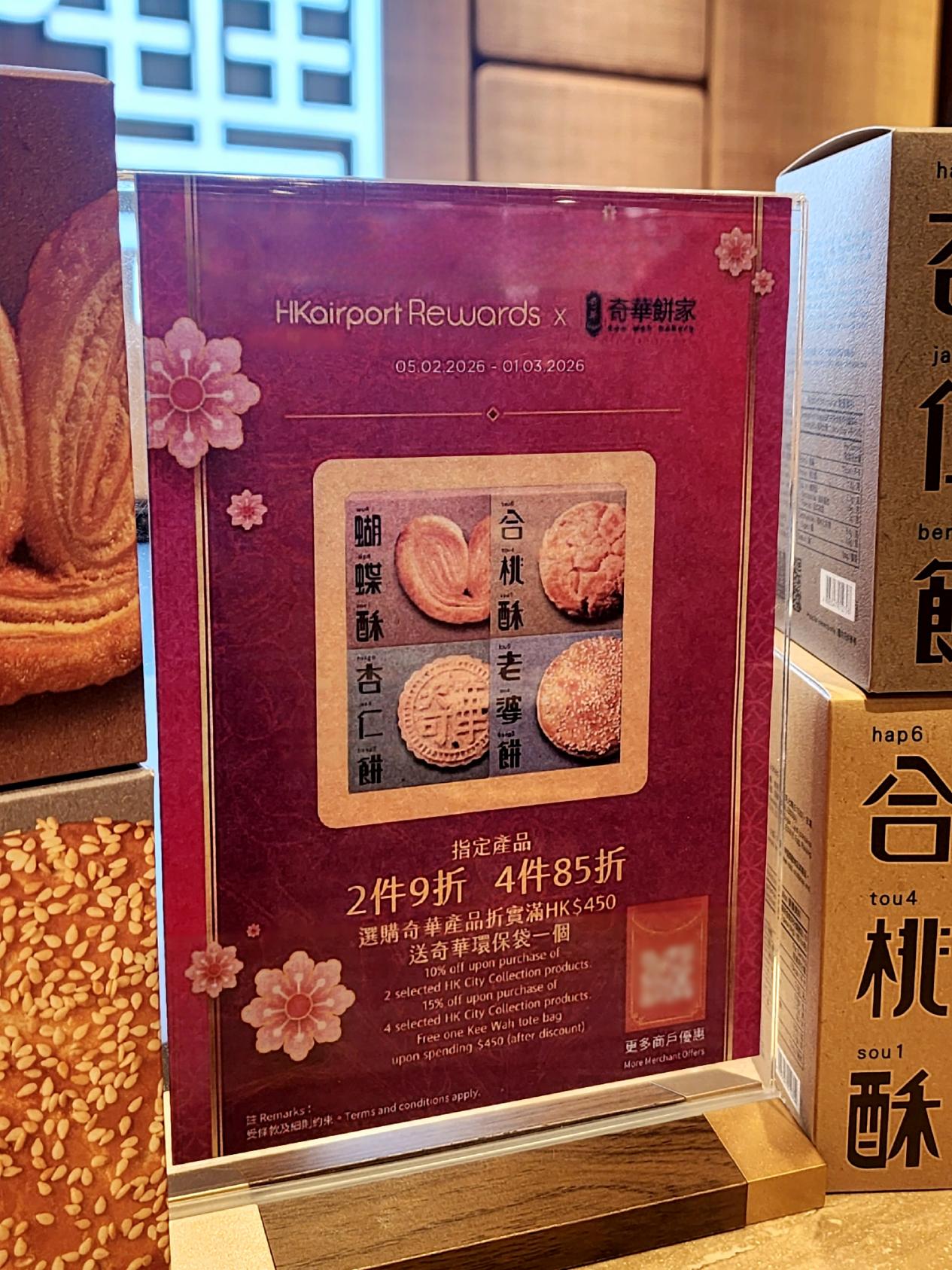 春节期间折实消费满港币$450可获赠奇华环保袋,还有买2件9折、买4件85折的优惠,买得越多越划算。