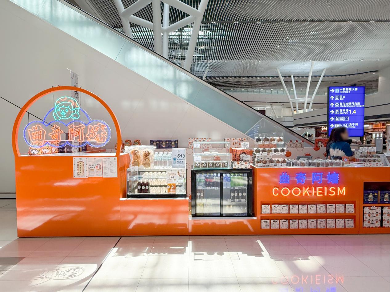 偏爱甜品的旅客,一定要打卡T2的曲奇阿婶。店内主打手工厚切美式软曲奇,用料天然实在,口感松软香浓,老人小孩都能安心品尝,搭配一杯咖啡或清茶,就是候机时最惬意的小美好。店里还有人气手信礼盒,将这份港式甜蜜带回家,和亲友共享地道风味。