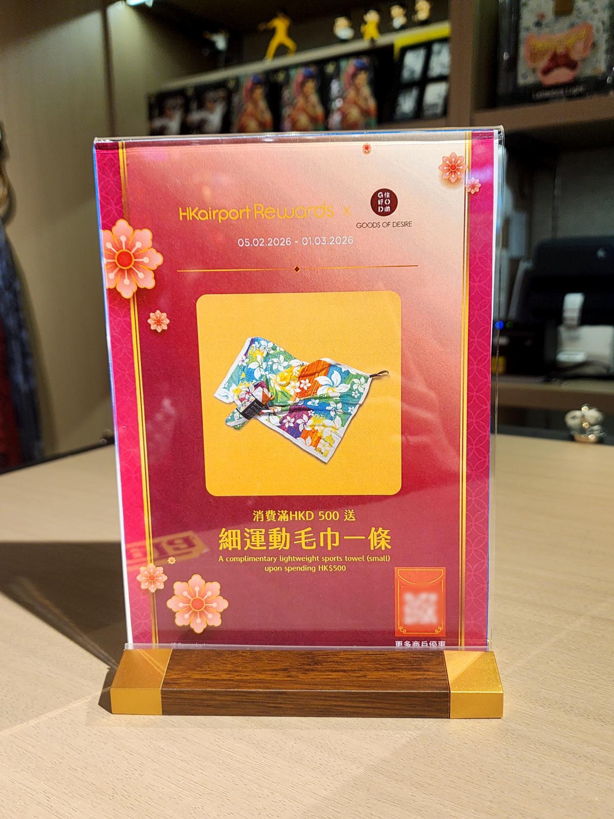 春节期间在店内消费满500港币及以上,还能获赠细运动毛巾一条,贴心又实用。